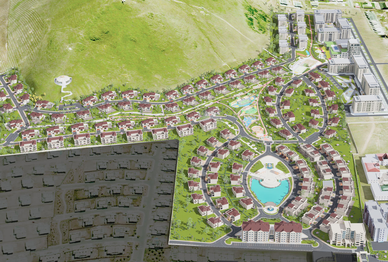 Khan Tugul Town boasts a sprawling 22-hectare area, serving as a bustling shopping and service hub for its residents. The town features 200 kindergartens, playgrounds catering to different age groups, outdoor and indoor sports complexes, public relaxation areas surrounded by natural beauty, running and cycling paths, mountain hiking trails, clubhouses for community gatherings, stunning lakes and fountains, as well as centralized infrastructure and meticulously planned architectural designs tailored to residents' needs.